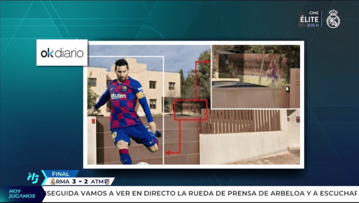 节目中,皇马TV还展示了主裁判穆努埃拉住所外的画面,现场不错看到一幅梅西的壁画。似乎意在示意裁判的态度可能存在争议。